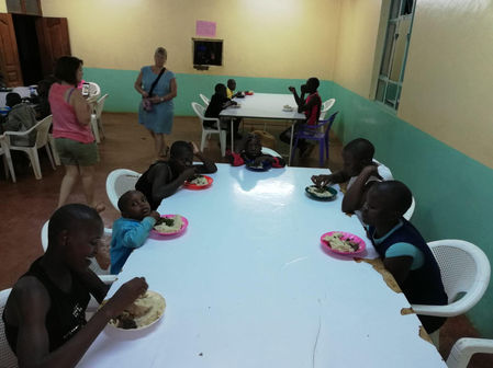 Actuellement, nous disposons de trois bâtiments : les chambres (dortoirs filles et garçons, une cuisine, une salle à manger).